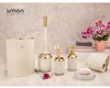 ست سرویس بهداشتی 6 پارچه رومانتیک لیمون شامل : سطل زباله ، فرچه توالت ، جای مایع ، جای مسواک ، جای صابون ، آویز دستمال توالت. از مواد اولیه درجه یک پلاستیکی ساخته شده است. طراحی ظاهری این ست فوق العاده زیبا به صورت دایره ای می باشد. سطل زباله این سرویس به صورت بادبزنی طراحی شده است. این ست زیبا انتخابی مناسب برای جهیزیه عروس نیز می باشد.