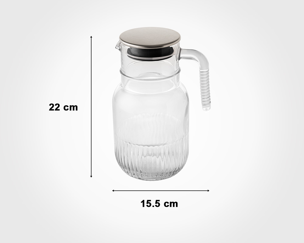 مشخصات فنی پارچ شیشه ای شیاردار 1.5 لیتر درب استیل لیمون