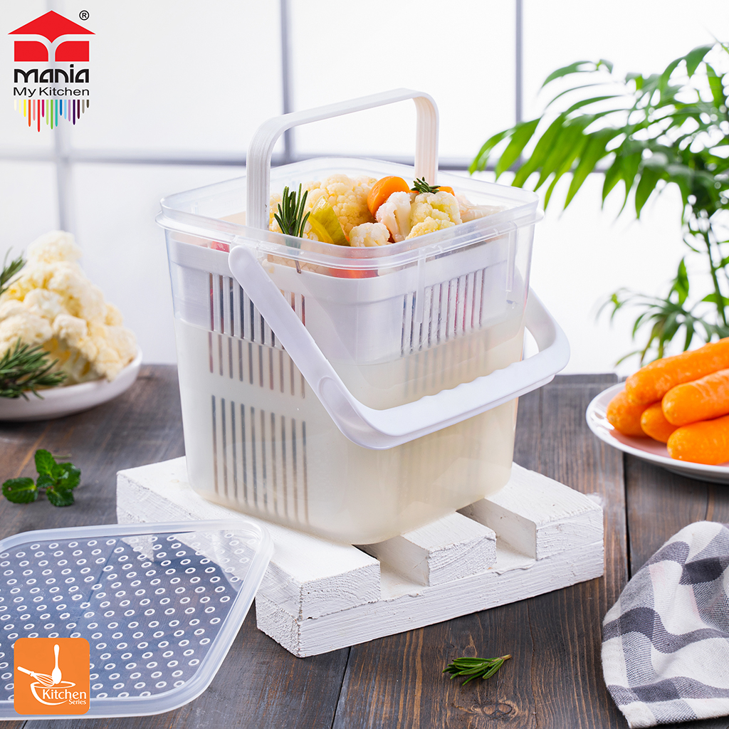 اگر برای نگهداری ترشیجات و لبنیات در داخل یخچال به دنبال ظرف مخصوصی هستید که باعث تازه ماندن مواد غذایی شود، ظرف مخزن دار مانیا بهترین انتخاب برای شماست. این محصول با دارا بودن یک سبد دسته دار جداگانه بهترین وسیله برای نگهداری انواع ترشیجات، خیارشور، پنیر، زیتون و ... می باشد. سبد دسته دار داخل این محصول باعث جداسازی آب مواد غذایی میشود و علاوه بر تازه ماندن مواد غذایی، مصرف آنها را هم آسان تر می کند. این ظرف از مواد اولیه از جنس پلی پروپیلن استاندارد با گرید مواد غذایی ساخته شده و فاقد ماده مضر بیسفنول آ (BPA) است. ظرفیت این محصول 2.75 لیتر بوده و قابلیت شستشو با دست و ماشین ظرفشویی را دارد.