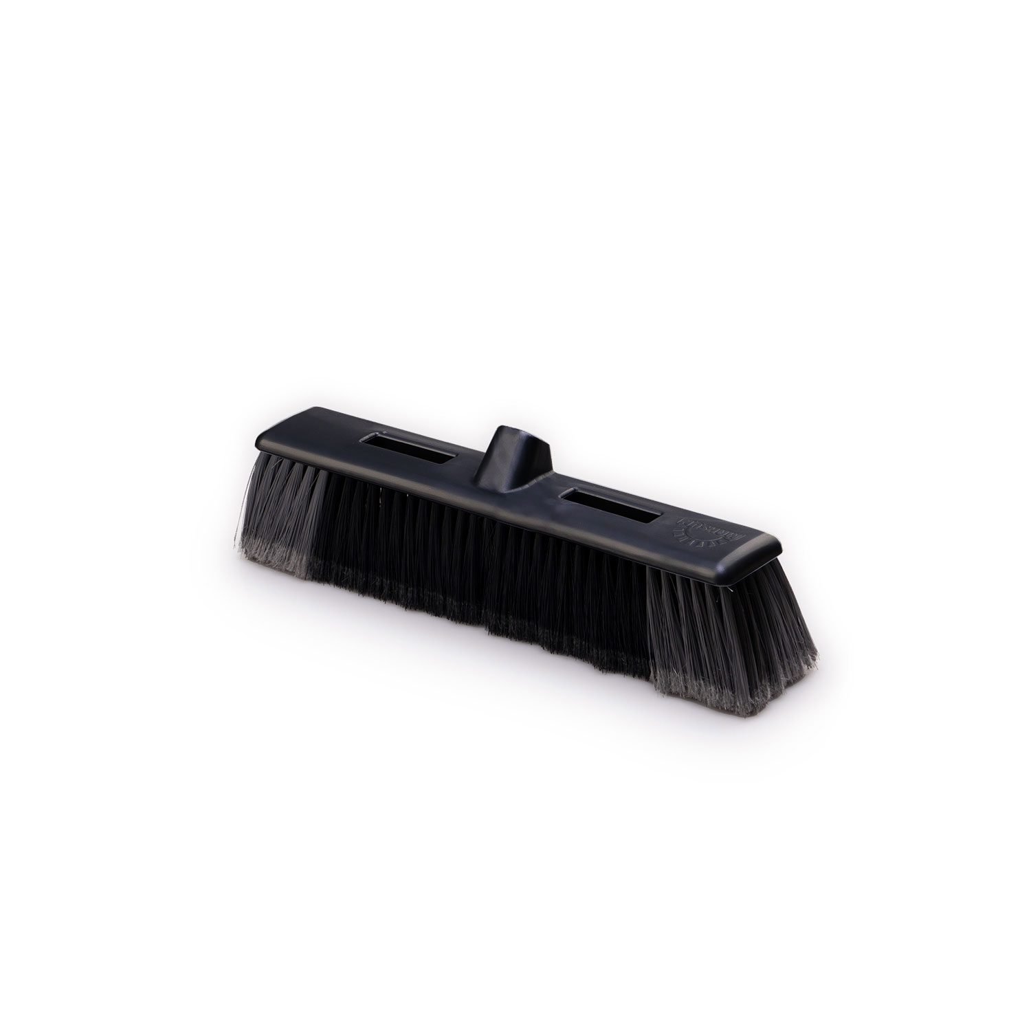 جنس بدنه جارو پهن بدون دسته مهسان پلی اتیلن با کیفیت می باشد. موهای برس این محصول از جنس PET نرم و مقاوم میباشد. محل اتصال دسته به این محصول به صورت مورب بوده که این ویژگی کار جارو کردن را آسان تر می کند. این محصول مناسبت تمیز کردن منزل، محل کار، رستوران، کافه و ... می باشد.